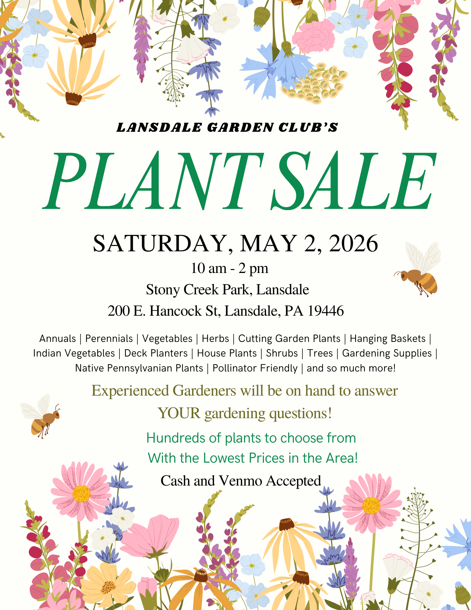 At Lansdale Garden Club, we wish to build an educational and social community linked by the love of plants and gardening. Our mission is to provide a safe place to learn and share knowledge of plants and gardens, and to build a community of plant enthusiasts.